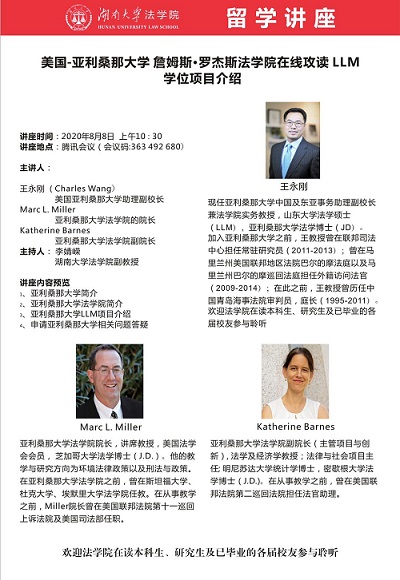 讲座主题:美国-亚利桑那大学詹姆斯·罗杰斯91论坛 在线攻读 LLM 学位项目介绍