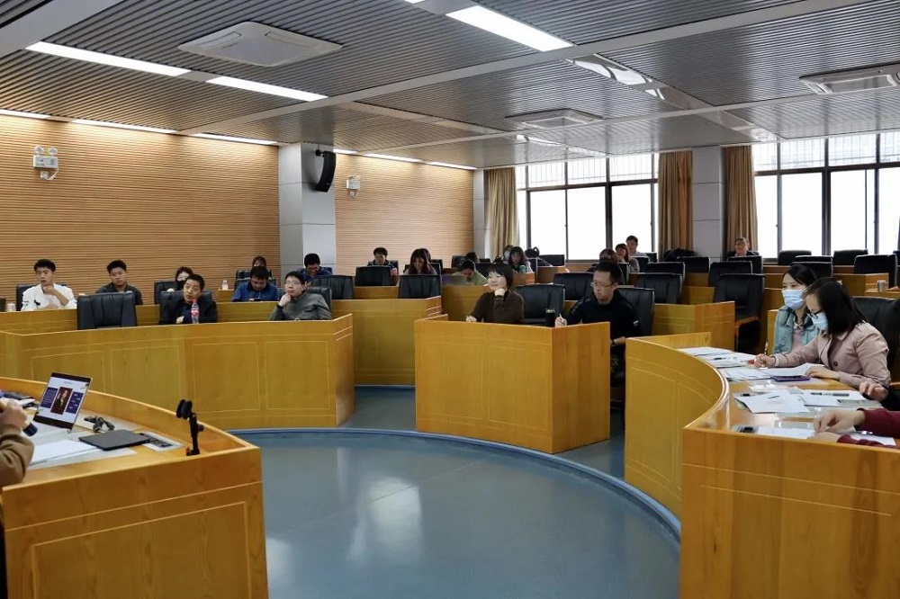 521室举行了本学期首场岳麓公法读书会。罗英、展鹏贺、刘怡达三位老师参加并指导了本次读书会活动。本次读书会共分为两个部分,第一部分由2020级法本法硕班危泽裔同学进行题为《“双轨制”下法官惩戒程序机制研究》的论文汇报。同学们认真听取了论文汇报并进行了深入思考,三位老师在汇报完毕后对危泽裔同学的论文构思与写作进行了肯定,同时指出了一些不足之处,并一起探讨了下一步的修改和完善方案。最后,三位老师和同学们就本学期读书会的具体形式和内容安排进行了热烈讨论。晚上9点,本次读书会活动在同学们的掌声中圆满结束。