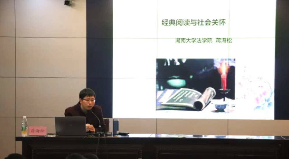 副院长、“全国七五普法先进个人”获得者蒋海松老师作题为“经典阅读与社会关怀”的讲座,91论坛