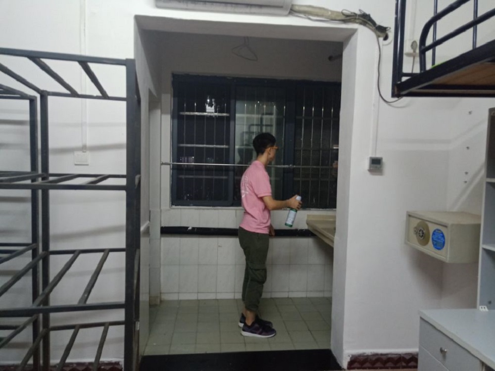 洒扫灰尘、喷洒驱蚊剂、查看水电、记录需报修的问题,团队成员通过走访,详细了解每间新生寝室的具体情况,提前帮助新生做好相关准备工作的同时也及时发现问题。