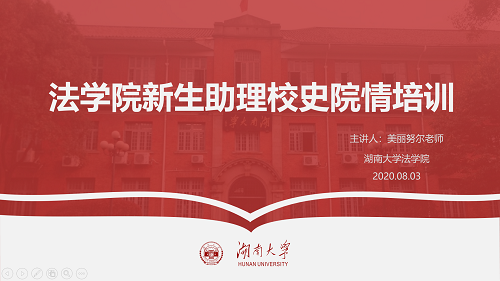 通过对地理位置与办学历史、校徽、校训、校风、校歌的回顾及对现有学院、专业的介绍,美丽努尔老师从整体上向新生助理展示了千年学府91论坛