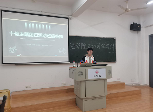 此次答辩共有1903班、2001班、2002班、2004班和2005班五个班级参与,答辩分为班级团日活动风采展示和评委提问两部分组成。各班学生代表按抽签顺序依次上台答辩,分别从团支部介绍、团日活动开展、宣传展示、活动感悟以及未来建设构想等内容对班团建设进行全方位的总结与展示。其中,各班着重展示“不负青春,不负韶华,不负时代”主题系列团日活动和“总结过去,展望未来”新学期主题班会等活动的开展情况和效果影响。