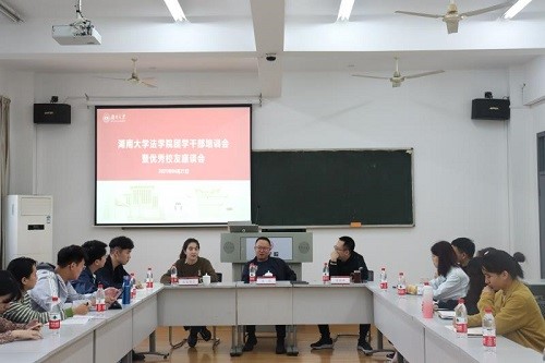 法学专业本科2005届校友文靖,党务与学生工作办公室主任、研究生辅导员刘岳峰老师,团委书记、2020级本科生辅导员美丽努尔老师,团委、学生会、研究生会部分骨干同学参与座谈。