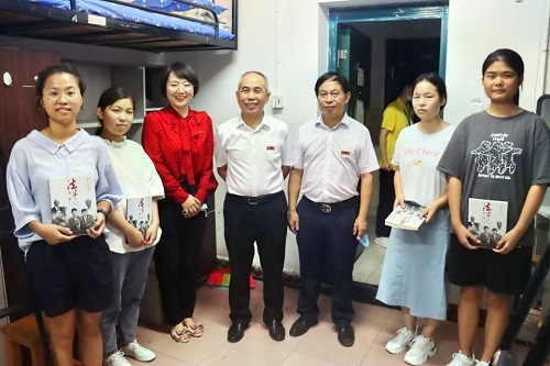 在新生宿舍,学院领导与新生亲切交谈。老师们仔细询问新生的来源地、对长沙的气候是否适应、食堂的饭菜是否合乎口味、宿舍的住宿条件、对法学专业的想法等。同时,院领导对新生的内务整理、军训的仪容仪表等方面提出建议。