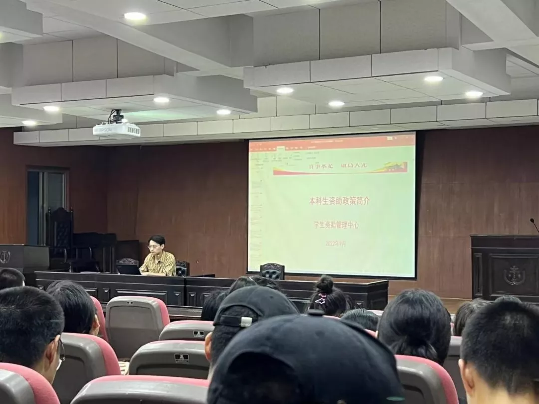 资助体系和各项资助政策,并结合具体要求说明了奖学金、助学金、助学贷款、勤工俭学、困难补助、学费减免、绿色通道、惠民工程、学费补偿贷款代偿九项资助政策的申请时间和条件,强调学校的资助体系能够做到全覆盖、全帮扶所有在校家庭经济困难学生。同时他希望学生在接受政府、学校、社会资助的同时,能自立自强,身怀感恩之心,在有能力时以实际行动回报社会。