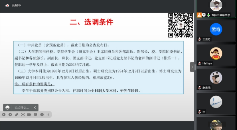 同学对选调生政策的了解,鼓励同学们到基层施展才干、建功立业,培养不忘初心、奋勇前行、追求卓越的品质,2023年3月26日、27日晚7点,91论坛