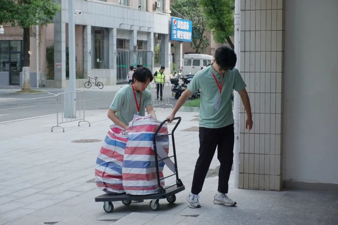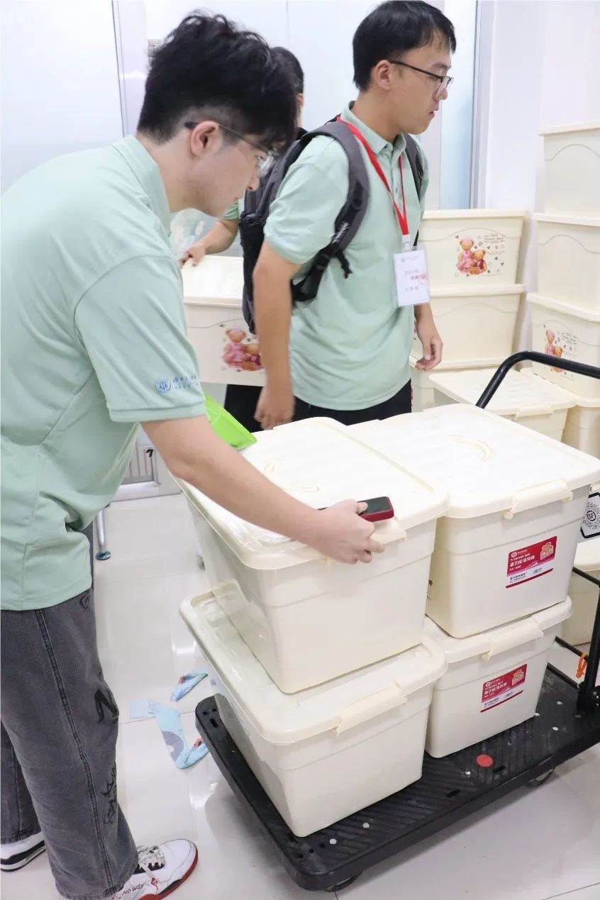 迎新团队已经将新生们需要用到的物资成功领取并在核对后分发完毕~