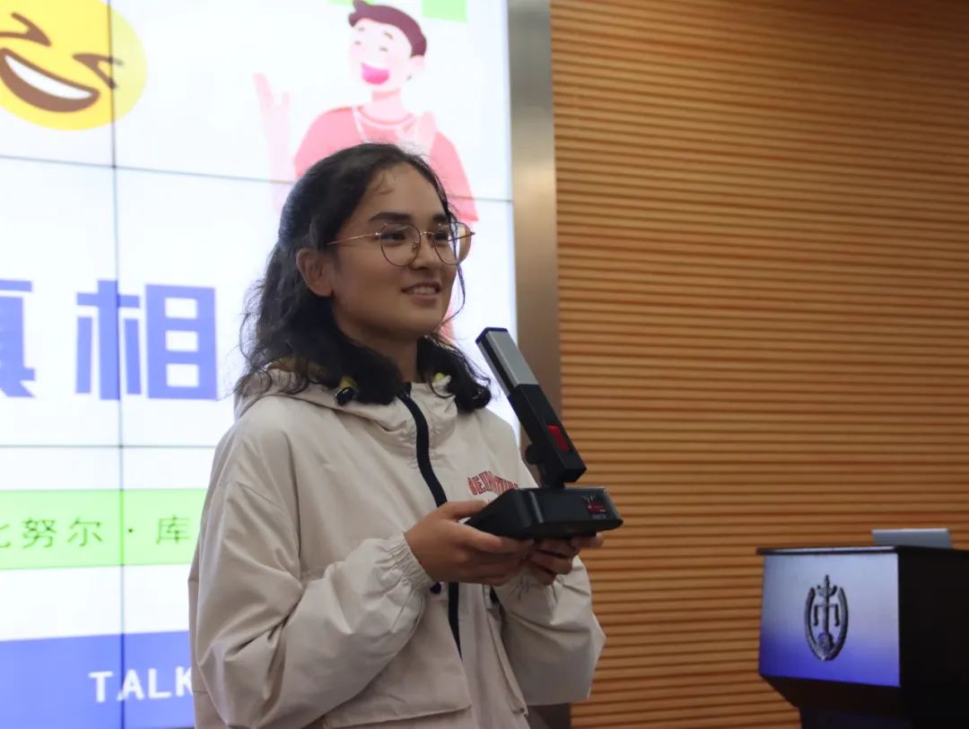 “当真的了解生活中的市场,才会变得更加强大。当然,法律还会倡导诚实信用原则,保护我们的权益。”来自2401班的选手开力比努尔·库尔班犀利而又深刻指出生活中的欺骗行为,如淘宝的买家秀与卖家秀,精准剖析问题的同时又与幽默表达完美缝合,引发观众在欢笑中深思。