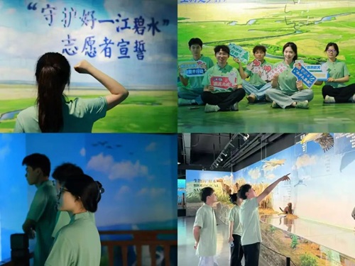 (团队成员在“守护好一江碧水”展陈馆与洞庭湖博物馆参观学习)