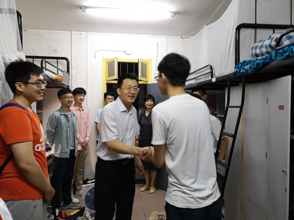 走访结束后,于书记等领导老师与2018届部分毕业生在寝室楼下合影留念。于书记和宋部长向同学们挥手告别,向毕业生们表达祝福与不舍!