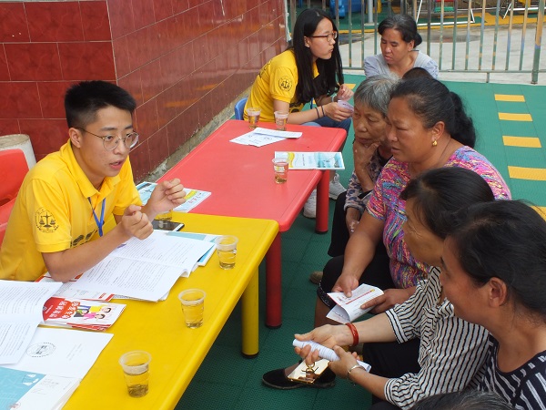 下午,社会实践团成员与双峰县司法局在村幼儿园设点,联合开展“送法下乡”活动。同学们与司法局工作人员坐镇普法宣传点为村民答疑解惑,前来咨询的村民络绎不绝,现场气氛热烈。“求职过程中如何辨别合同中的有效和无效条款?消费中遭遇纠纷有哪些维权途径?劳动者工伤如何认定?在三包有效期内,电子产品出现质量问题该怎么办?口头租赁合同有没有法律效力?在外打工遭遇黑心老板拖欠工资该如何解决?…… ”村民针对在日常生活中遇到的法律问题向同学们和司法局工作人员咨询。“通过本次普法我感觉法学专业是一门实践性特别强的专业,我们必须要将把课堂上学到的理论知识运用到实践中去。”普法队员李永罗表示要认真学习书本知识,打牢专业基础,同时多关注社会的热点问题,并尝试用法律思维去理性看待。