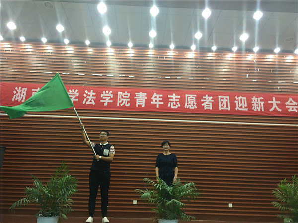 随后,付书记在同学们的掌声中挥动团旗,并将志愿者团团旗授予宋思远团长。那一刻,每一位新团员都感受到了身上所肩负的志愿责任。