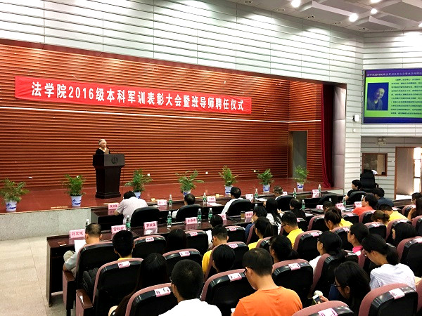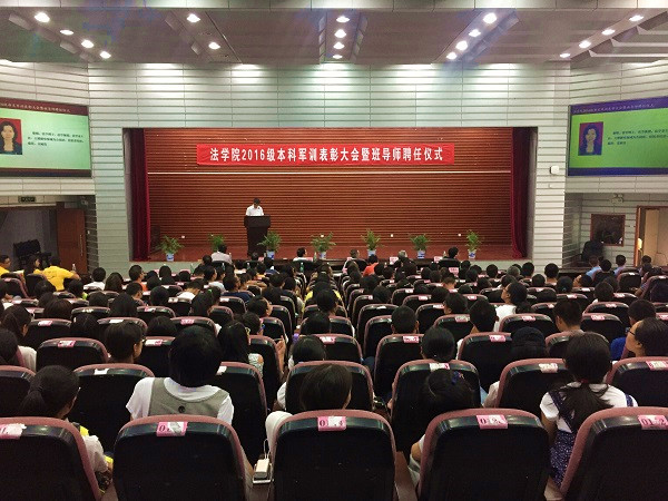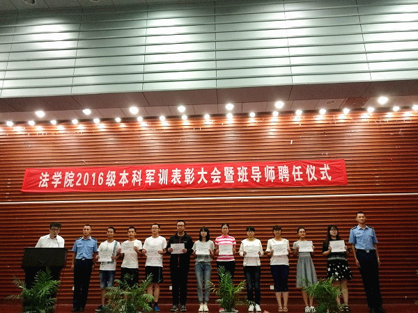 2016级新生军训表彰决定》,法学1605班、行管1602班被授予“军训优胜队列班”荣誉称号,法学1601班、法学1604班被授予“内务评比先进班级”,法学1602班、法学1603班、行管1601班被授予“军训作风纪律先进班级”荣誉称号,天马二区一栋331寝室等10个寝室被授予军训内务评比“优秀寝室”,马有翼、崔一帆等35人被授予“军训先进个人”。学院领导和老师、全体教官为获奖的优秀集体、个人颁发了荣誉证书。