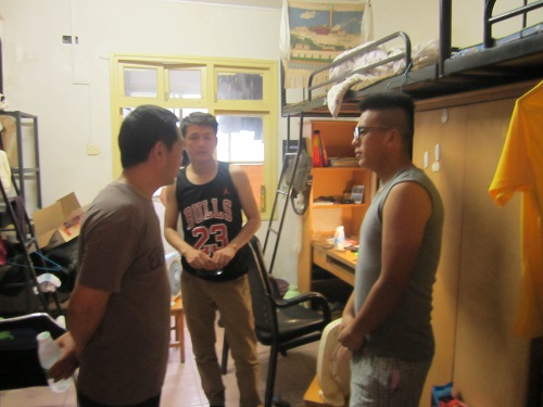 走访完二区三栋女生寝室后,栾书记又来到位于一区二栋的男生寝室。在103寝室,栾书记亲切询问藏族同学的学习和就业情况,并告诉毕业生有什么困难要及时向学院和学校反映,学校将尽最大所能帮助同学们,希望同学们不要忘记母校,常回家看看。在119寝室,栾书记仔细询问留宿同学的相关情况,针对寝室漏水、楼道杂物堆放等情况,栾书记随即叮嘱陪同的园区中心和学工部园区办负责老师,要尽快解决寝室和楼道管理过程中存在的问题,为留宿的毕业生和2014级新生创造一个舒适的生活和学习环境。