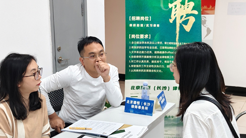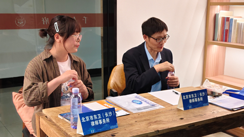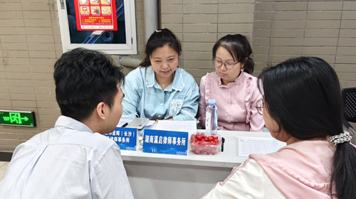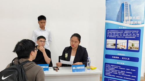 321教室还开展了小型宣讲会。湖南湘军麓和律师事务所和北京德和衡(长沙)律师事务所、北京天驰君泰(长沙)律师事务所从律所规模、律所环境、招聘要求、薪资待遇等方面向同学们进行了介绍,并回答同学们关于之后职业规划、律师前景发展等问题,现场气氛热烈。