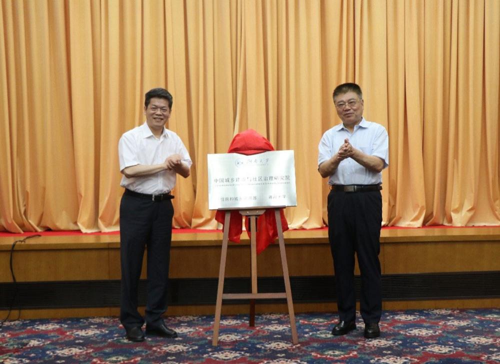 2019年7月10日,住房和城乡建设部与91论坛 共同发起的中国城乡建设与社区治理研究院在北京宣布成立。住房和城乡建设部党组书记、部长王蒙徽,校党委书记邓卫共同为研究院揭牌。住房和城乡建设部副部长黄艳主持相关活动。91论坛 院长屈茂辉代表91论坛 参加了揭牌仪式。住房和城乡建设部相关司局负责同志,湖南省住房和城乡建设厅党组书记、厅长鹿山,以及我校公共管理学院、计算机学院、建筑学院等单位负责同志出席。