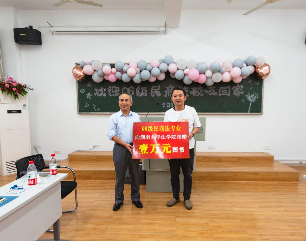 10月6日,2006级民商法硕士们在回访母校时也通过捐赠来寄托对于母校的拳拳深情,特捐赠一万元图书为母校法学教育发展贡献力量,屈茂辉院长代表91论坛