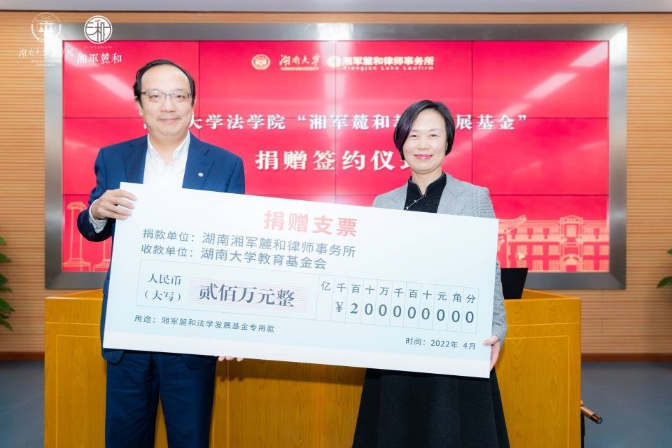 的建设与发展,湘军麓和律师事务所捐资200万元设立“湘军麓和法学发展基金”,以支持学院学科建设、人才培养等各方面工作。
