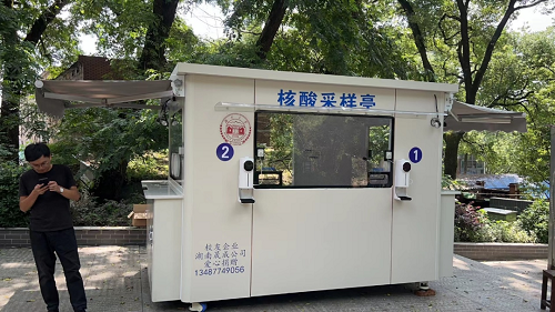 为应对疫情的突发,打赢疫情持续保卫战,推出了自主设计生产的核酸采样亭,湖南晟成核酸检测亭配备10Pa正压,触控式可控除菌新风系统,冷暖内循环空调,可控定时紫外消杀室内空间。主体钢架结构釆用浸泳,内外饰都是釆用车规级材质,质保期可达八年以上。有四工位、三工位、两工位作业模式,全程无接触采样,标本冷链储运,医废隔离收集。可移动式模块化脚轮,适合在各种露天环境中进行短距移动。人机工程设计优化,使釆集更便捷安全高效。