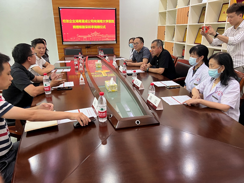 首先,我校2001级工业设计专业校友、湖南晟成公司董事长唐少华先生发表了热情洋溢的致辞,表达了自己对母校深厚的感情,对白衣天使无比地敬佩,并讲述了自己的创业经历,介绍了企业的经营状况和本次捐赠的核酸采样亭的功能和特点。