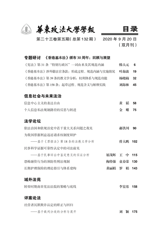 王中博士生与导师在CLSCI《华东政法大学学报》发表论文