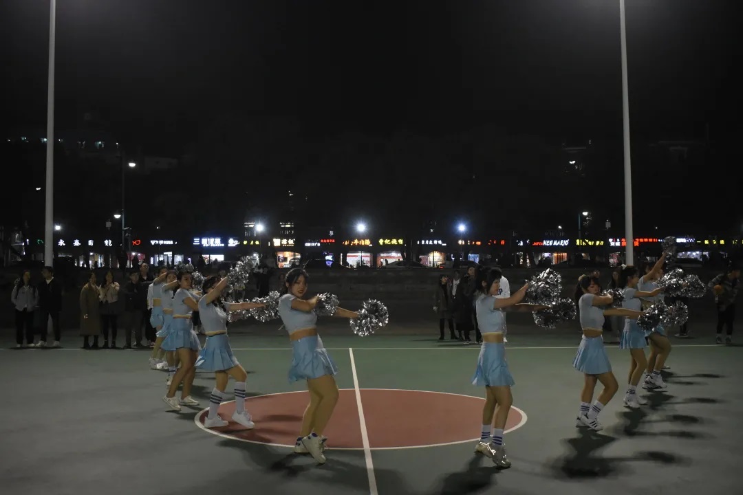 拉拉队队员身着天蓝色拉拉队服,迎着寒风展示出充满活力的舞姿,赢得场下观众一片叫好。