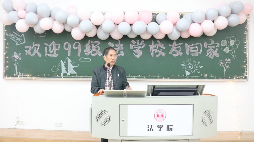 校友发言完毕,屈茂辉院长介绍学院近年发展情况,并对校友们的发言进行总结,肯定校友们取得的成就,表示要进一步加强校友工作,努力让母校成为学子们永远的精神家园。