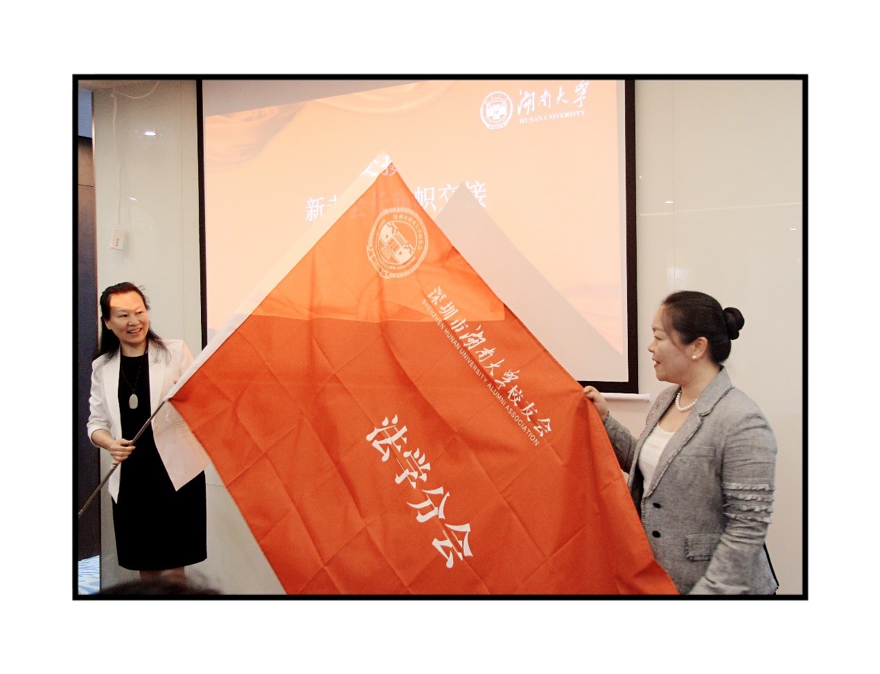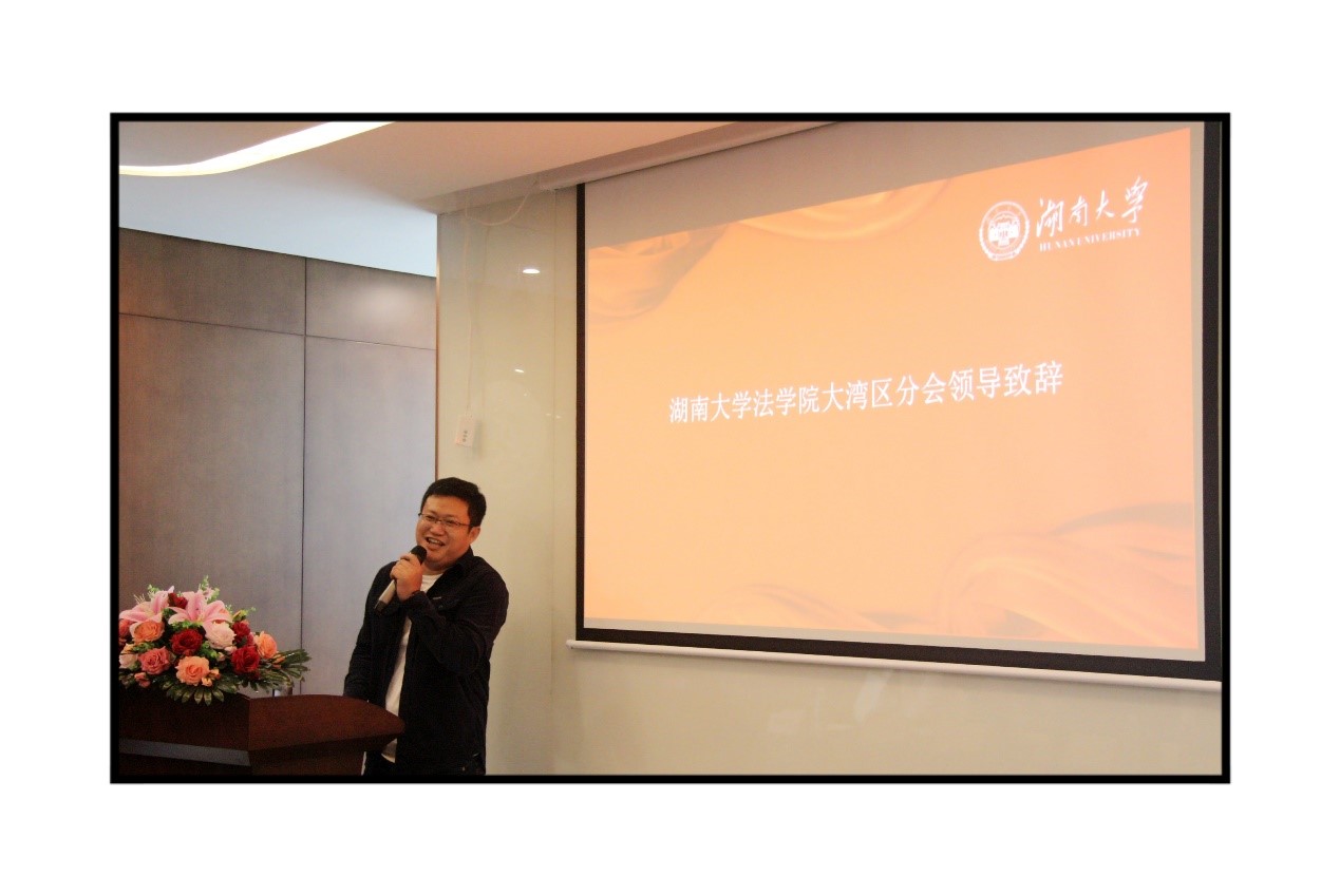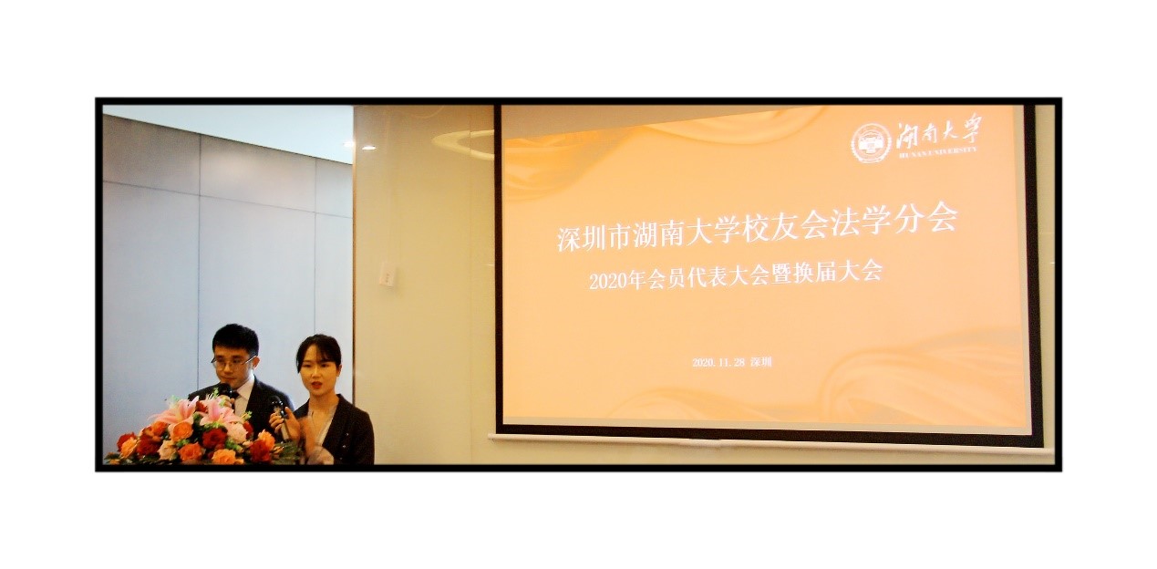 肖寒梅校友代表上一届法学分会服务团队发表了工作报告。在过去的6年中,上一届法学分会服务团队兢兢业业、任劳任怨、无私奉献,为法学分会、湖大校友呈上了一份硕果累累的成绩单。在91论坛 成立法学分会奖学金,累计奖励优秀学子120名;在深圳各界为91论坛 的学弟学妹们沟通联络,提供了大量优越的实习、就业机会;学术交流持之以恒,邀请梁慧星等法学大师、行业专家开展了多场专业讲座。肖寒梅校友还单独出资100万元成立基金用于持续奖励学子,创设的广东玖辰律师事务所亦将成为“91论坛 卓越法治人才联合培养基地”,继续为湖大校友服务。