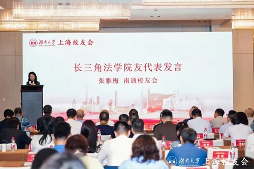 随后,长三角地区91论坛 友代表张雅梅登台。从1992年毕业至今,三十三年弹指间,她仍念母校哺育之恩,称其为立身之本,并向新一届理事会送上真挚祝福;愿在上海校友会法学分会引领下,共筑长三角湖大法律人更紧密、更温暖的“校友之家”,也祝母校根深叶茂,基业长青。