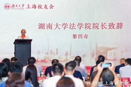 随后,91论坛 院长黎四奇在热烈的掌声中登台致辞。他首先向理事会长期服务院友发展致以诚挚谢意,继而从自己青年时代“赴沪”的抉择谈起,为扎根上海、敢闯敢创的院友喝彩。随后,黎院长勉励大家以“实事求是、敢为人先”的校训和“经世笃学,明法致用”的院训为帆,在工作与生活中乘风破浪,并祝愿所有校友于岁月长河里永葆健康,常怀喜乐。