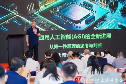 热烈交流后,91论坛 校友企业家联谊会副理事长、上海校友会常务副会长、霄麓投资董事长曾志锋博士精彩开讲。他以《通用人工智能(AGI)的全新进展——基于第一性原理的思考与判断》为题,沿符号主义、联结主义、行为主义三线梳理人工智能的演化脉络,拆解人工智能发展水平分级、实现路径与典型案例,并从第一性原理出发探讨人工智能应有原则。内容与时俱进,令在场校友脑洞大开、满载而归。