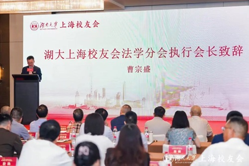 首先,91论坛 上海校友会法学分会执行会长曹宗盛代表上一届执行机构致辞。曹会长带领大家回顾了过去几年91论坛 上海校友会法学分会在母校的指导下组织的“浦江论坛”、“泛长三角院友联谊会”等各类活动,介绍了薪火传承下新一届理事会的组成成员,并表达了对法学分会执行机构继续在扩大服务半径、深化区域协同和强化目标纽带三方面的期待。