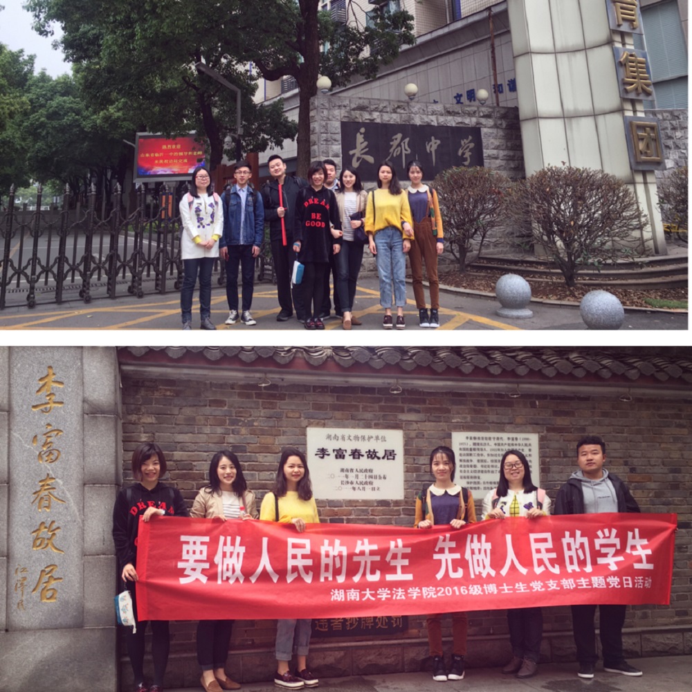 2016级博士研究生党支部全体党员在湖南第一师范学院城南校区、长郡中学、李富春故居等地开展“要做人民的先生,先做人民的学生”系列主题党日活动。