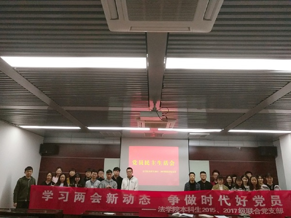本科生2015、2017级联合党支部在法学楼404会议室召开党员民主生活会,学习两会新动态,争做时代好党员。本科生2015、2017级辅导员李释然老师受邀出席,支部全体党员、预备党员共24人参加会议。