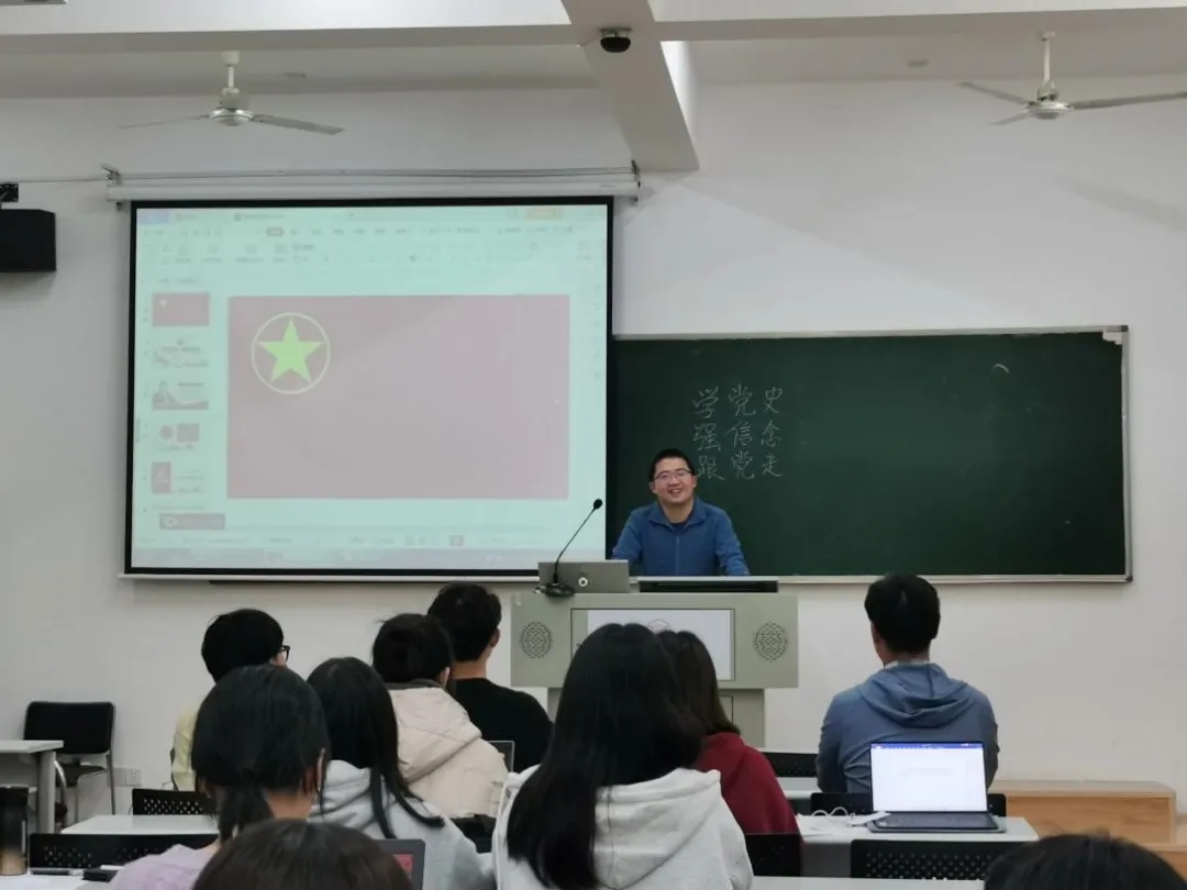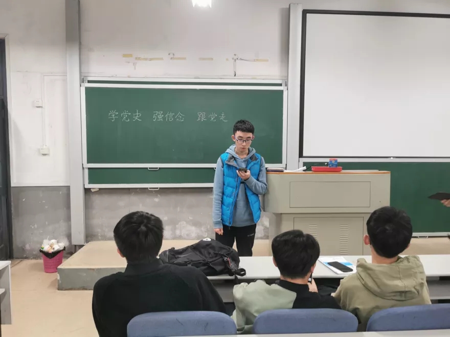 柯虹羽首先介绍本次活动的内容与目的,讲解具体投票规则。引导全体同学知史爱党,学史爱国,学习贯彻习总书记“七一”重要讲话精神,并发出号召,希望同学们积极学习党史,贯彻习总书记讲话精神,深刻领悟马克思主义哲学,爱党爱国,拥党护国。上级团组织负责人董一鸣也进行点评讲话,鼓励大家要“系好人生第一颗扣子,走好人生路。