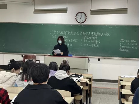 2021年11月19日,法学2004班举办团组织生活会及团员评议大会。会议由班级团支书彭敬茹主持。