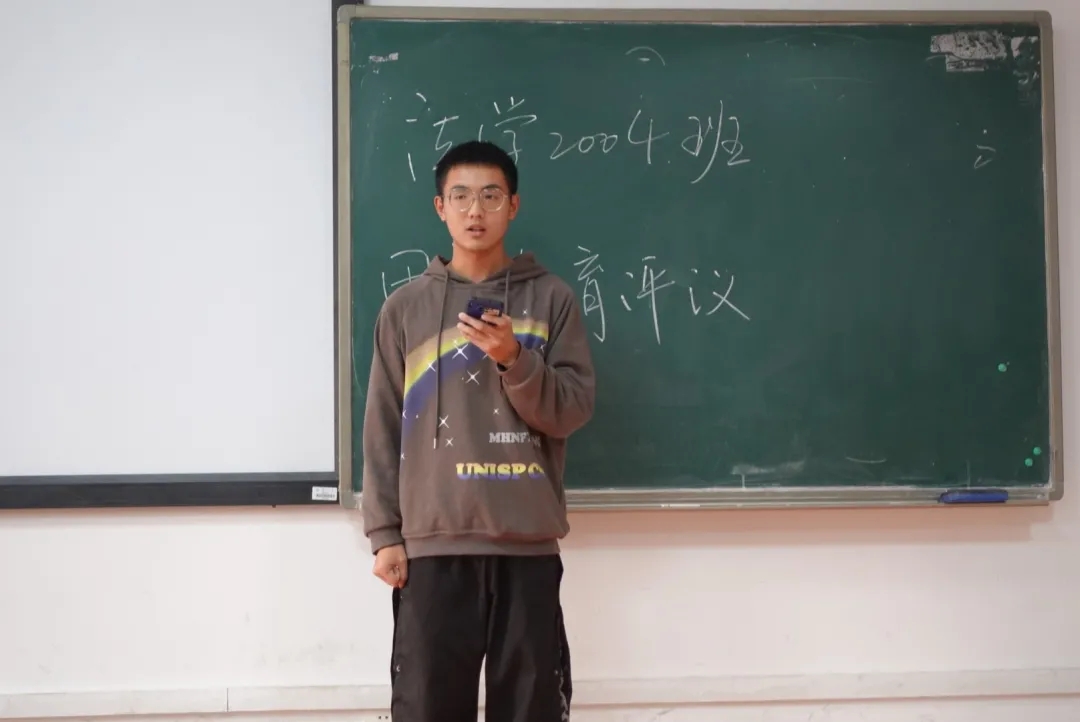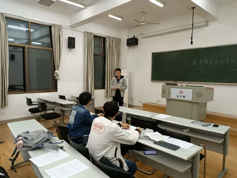 303教室召开团支部专题组织生活会暨团员评议会。会议由法学2002班团支书陈翔宇主持,法学2002班班主任龙博及法学2002班二十五名团员参会,五名团员因课程冲突请假。