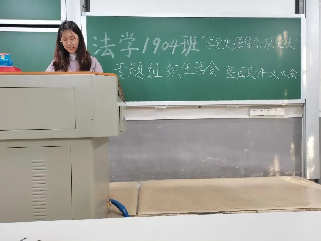 2021年11月19日,法学1904班在东楼104教室举行“学党史、强信念、跟党走”专题组织生活会暨团员评议大会,法学1904班全体同学参加会议。