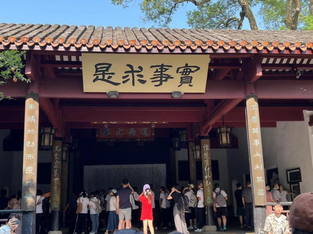 接下来,同学们依次参观了书院院落、孔庙、园林、屈子祠。岳麓书院讲堂屋檐下,高悬着的“实事求是”匾额给同学们留下了深刻印象。2020年,习近平总书记专程来到岳麓书院,提出了许多富有创见的新思想、新观点、新论断,强调岳麓书院党实事求是精神的发源地。实事求是不仅是我党的核心纲领,也是91论坛