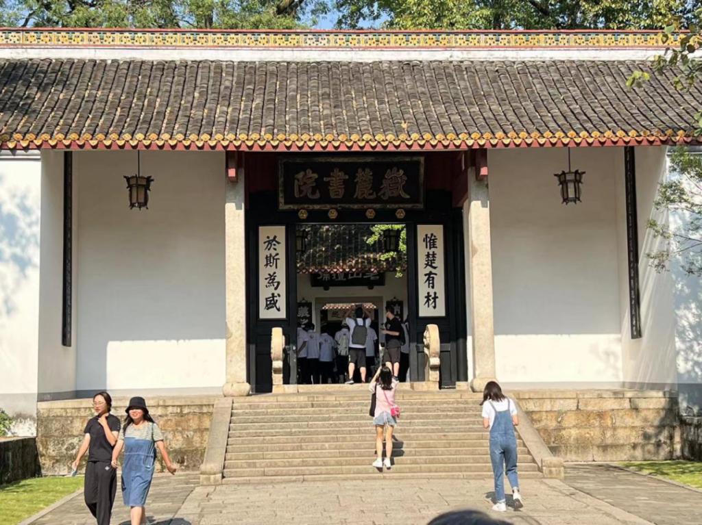 岳麓书院,重走总书记考察路。同学们在志愿讲解的学姐的带领下走到了岳麓书院门匾前,“惟楚有才,于斯为盛”映入眼帘,湖湘大地人杰地灵,江山代有才人出。寥寥八字所蕴含气势以及对岳麓学子的殷切期望振奋着在场的每一位同学。