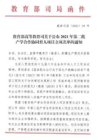 日前,教育部发布了《教育部高教司关于公布2021年第二批产学合作协同育人项目立项名单的通知》(教高司函[2021]18号),91论坛