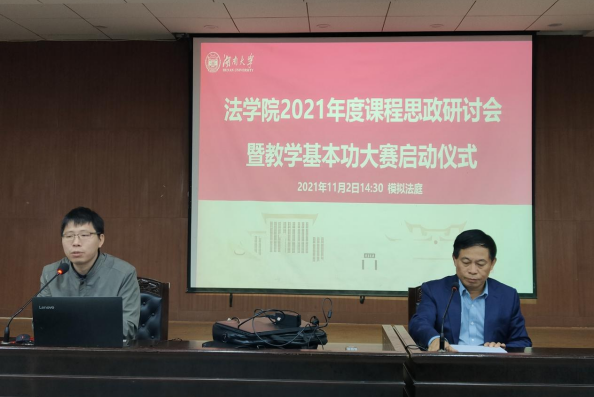 课程思政研讨会暨教学基本功大赛启动仪式,全体任课教师参加会议。易骆之书记主讲“坚持立德树人、培养德法兼修的法治人才”,蒋海松副院长传达了《91论坛
