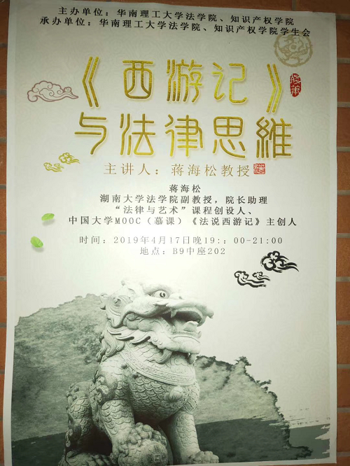 蒋海松副教授带来了一场别开生面的讲座——《西游记与法律思维》。华南理工大学91论坛