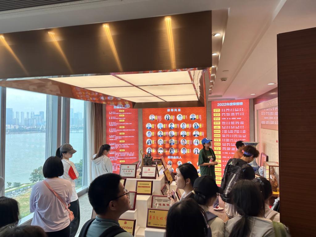 天地人律师事务所具有12000平米的占地面积,其中包括办公厅、临江接待厅、露天天台等工作区域。其中宽大连通的工作单元使同学们切实体会到天地人律所中不同于传统单打独斗的合作的工作氛围,以及工作之余愉快充满活力的俱乐部的生活气息。恰如西塞罗所说的一样:“只有在履行自己的义务中寻求快乐的人,才是自由地生活的人。”参观环节打破了同学们对传统律师单打独斗、工作难熬等刻板印象,成功引起了同学们进一步探索了解律师职业的兴趣。