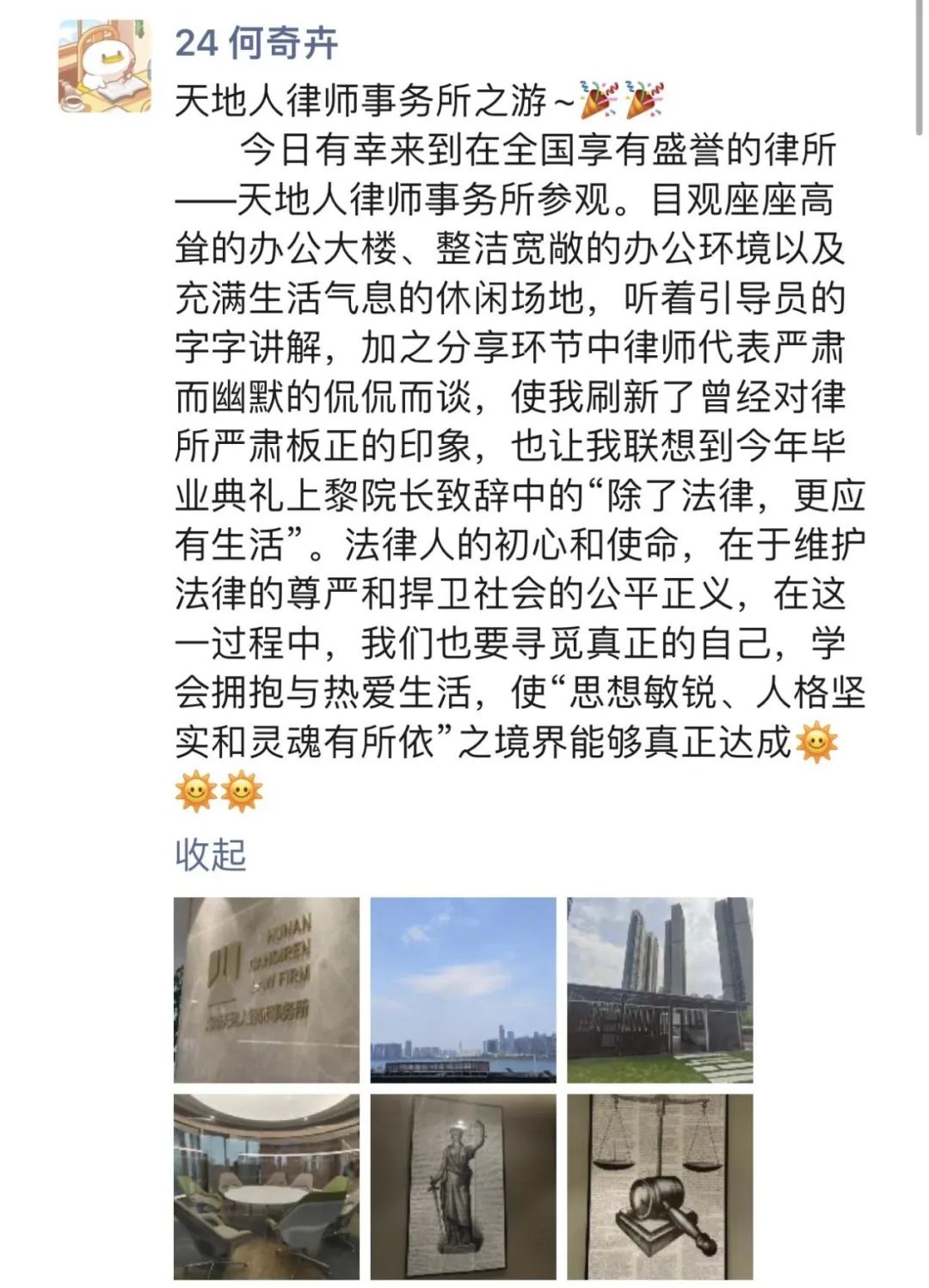 师生,分别带领同学进行了工作地点参观与介绍和欢迎会,同学们对律所的想象贴合现实,月迷津渡的迷惑也迎刃而解。