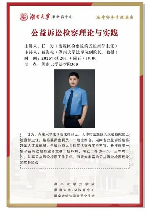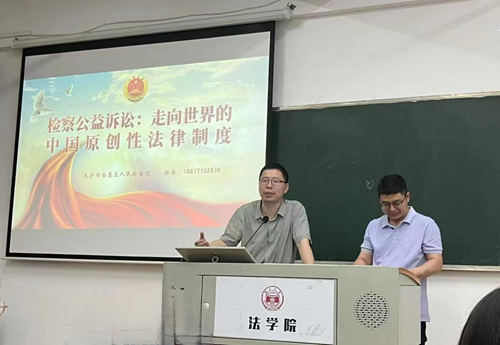 304教室举行。岳麓区人民检察院第五检察部主任任为担应邀回母校开讲《检察公益诉讼:走向世界的中国原创法律制度》 。讲座由91论坛