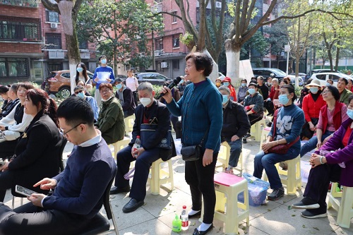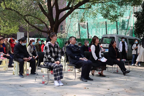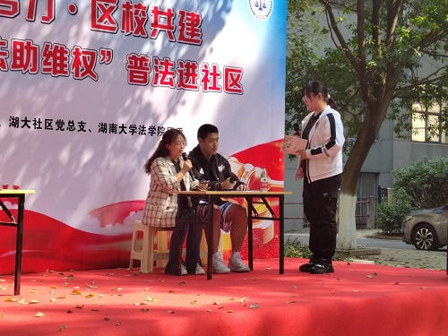 活动开始前,社区工作人员向居民发放普法宣传手册,居民阅读手册及海报有关科普内容。此次活动在罗英书记及夏运枚书记的讲话中拉开序幕,之后依次进行了情景剧表演、有奖问答、普法答疑环节。