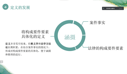 读书会进入第二个部分,由赵新月同学对默勒斯的《法学方法论》第四章进行读书汇报。她首先介绍了作为逻辑推理的涵摄和法解释的必要性,再引出萨维尼的四种法解释要素,并详细分析了其中的文法解释、体系解释和狭义的历史解释。张漫、罗玲作为本期与谈人也发表了看法。张漫补充分享了常安教授《以“公法与国家治理”为线索的公法著作阅读》的讲座内容。罗玲分享了自己在读完本章之后的两点思考:一是书中所提到的文法解释三步骤能否适用于所有的部门法;二是与德国相比,我们国家的立法材料较为单薄,在我们国家如何进行历史解释,值得思考。张恒、安春爱、张禄丹等同学也积极参与了讨论,提出自己对本章研读的思考。