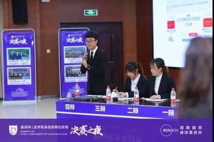 系校际辩论赛联赛决赛在中南林业科技大学博文楼模拟法庭举办。本次决赛特别邀请湖南融邦律师事务所管委会主任、法学博士宁洁,世界华语锦标赛辩论冠军、西南政法大学校辩论队队长邓冰莹,国际华语辩论邀请赛亚军、对外经贸大学辩论队执行教练、中国人民大学资深辩手徐天一莅临决赛现场担任评委。