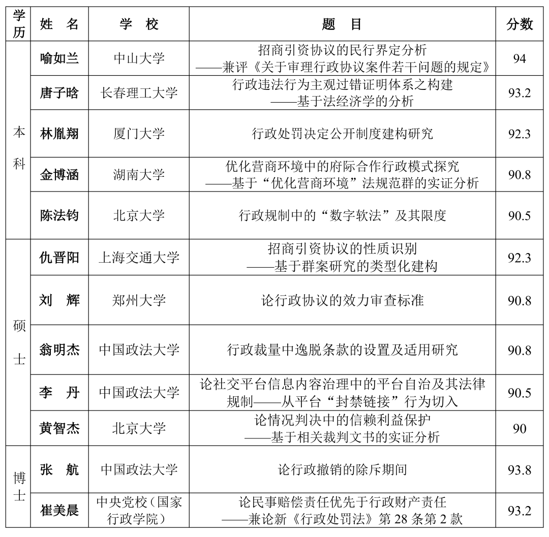 2021526日,中国政法大学第二期行政法莘学子成长培养计划公布入选名单,由91论坛 罗英老师指导的本科生金博涵入选该计划。经两组各3名专家评审打分,金博涵同学提交的《优化营商环境中的府际合作行政模式探究——基于“优化营商环境”法规范群的实证分析》以排名第4的成绩,与来自北京大学、中国政法大学、厦门大学、中山大学、中央党校(国家行政学院)等8所高校的12份作品一起入选。